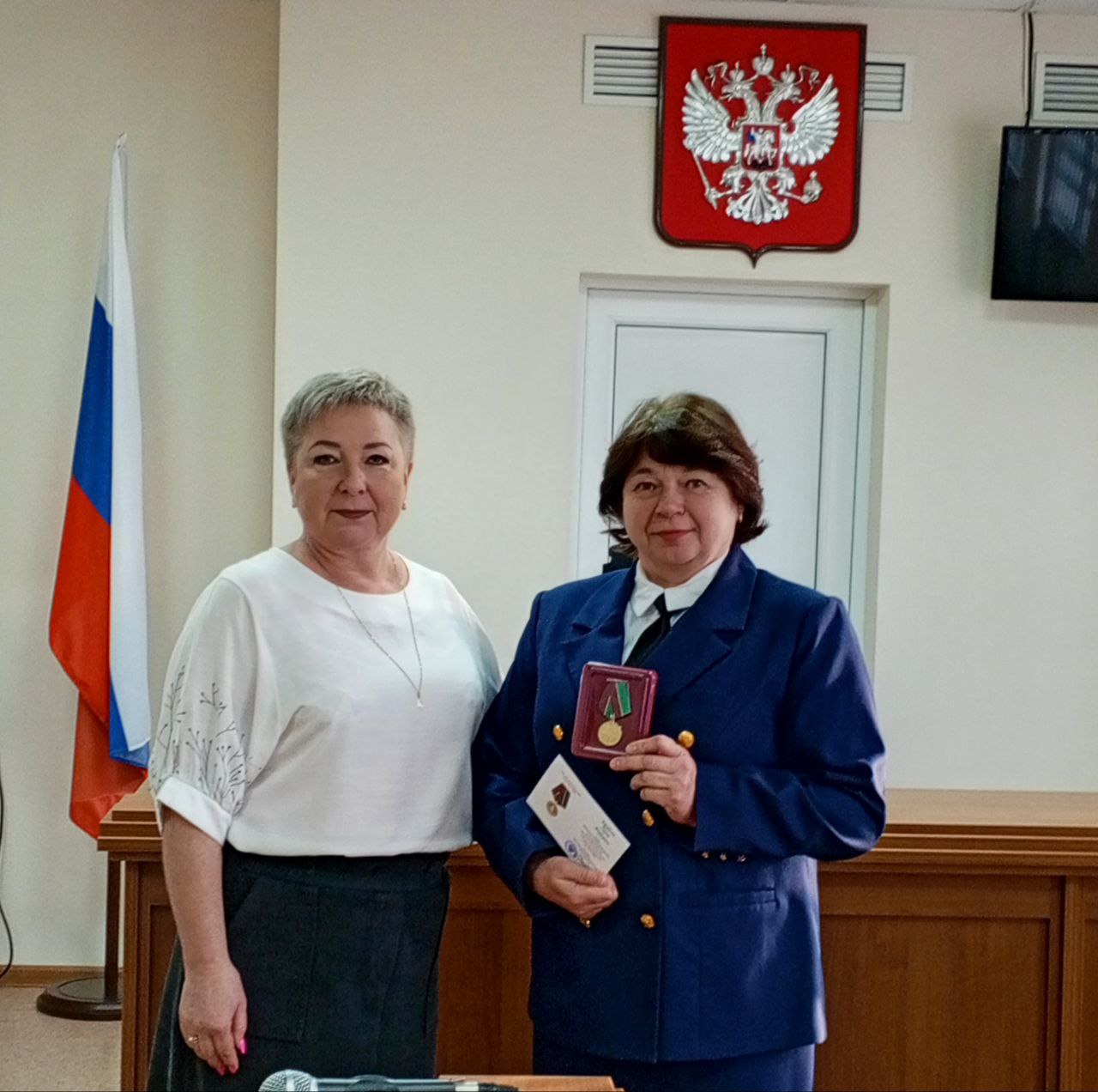 В свой профессиональный праздник – День работников суда, который впервые отмечался 5 ноября, – секретарь суда Ольга Яковлевна Зарубина получила высокую и заслуженную награду. Ей была вручена юбилейная медаль «100 лет Верховному Суду». Церемония вручения прошла в торжественной обстановке. Награду от имени председателя Тюменского областного суда Ольге Яковлевне вручила председатель Армизонского районного суда Елена Викторовна Максимова, отметив её огромный вклад в работу судебной системы. Общий стаж работы Ольги Яковлевны в Армизонском районном суде составляет без малого 39 лет. Это пример высочайшего профессионализма, преданности делу и безупречного исполнения своих обязанностей. ![]() |
